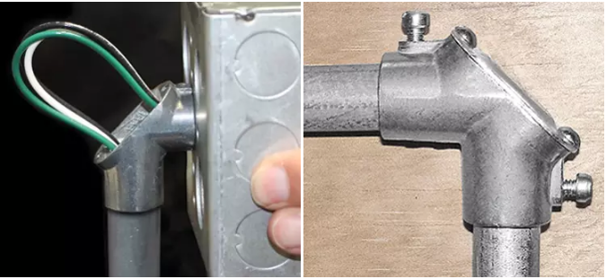 The EMT/Rigid combo elbow provides removable cover for easy wire pulling.